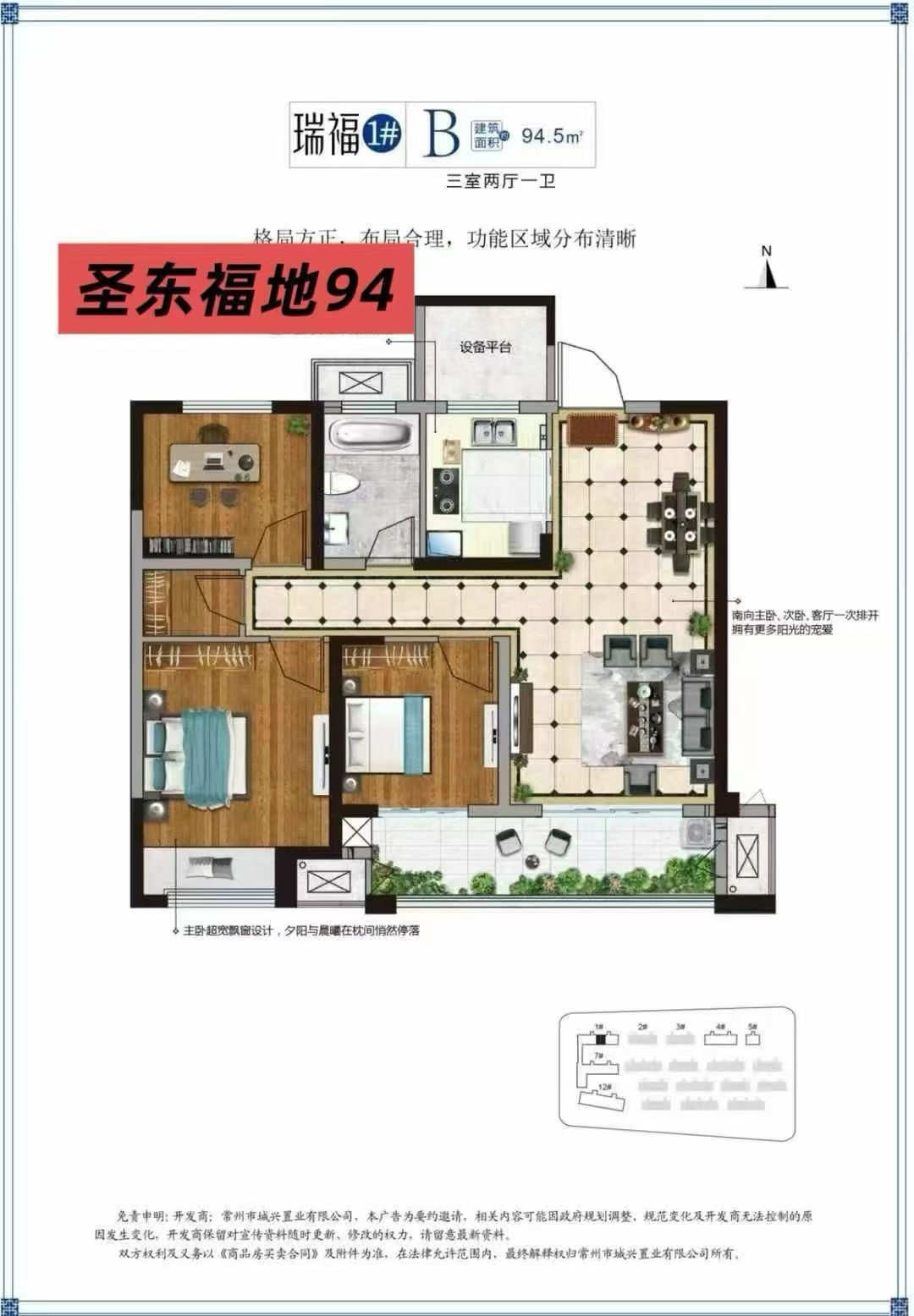 [出售] 圣东福地电梯房,最新的一期,新交付,毛坯,94平,3室2厅1卫双阳台,临近菜场学