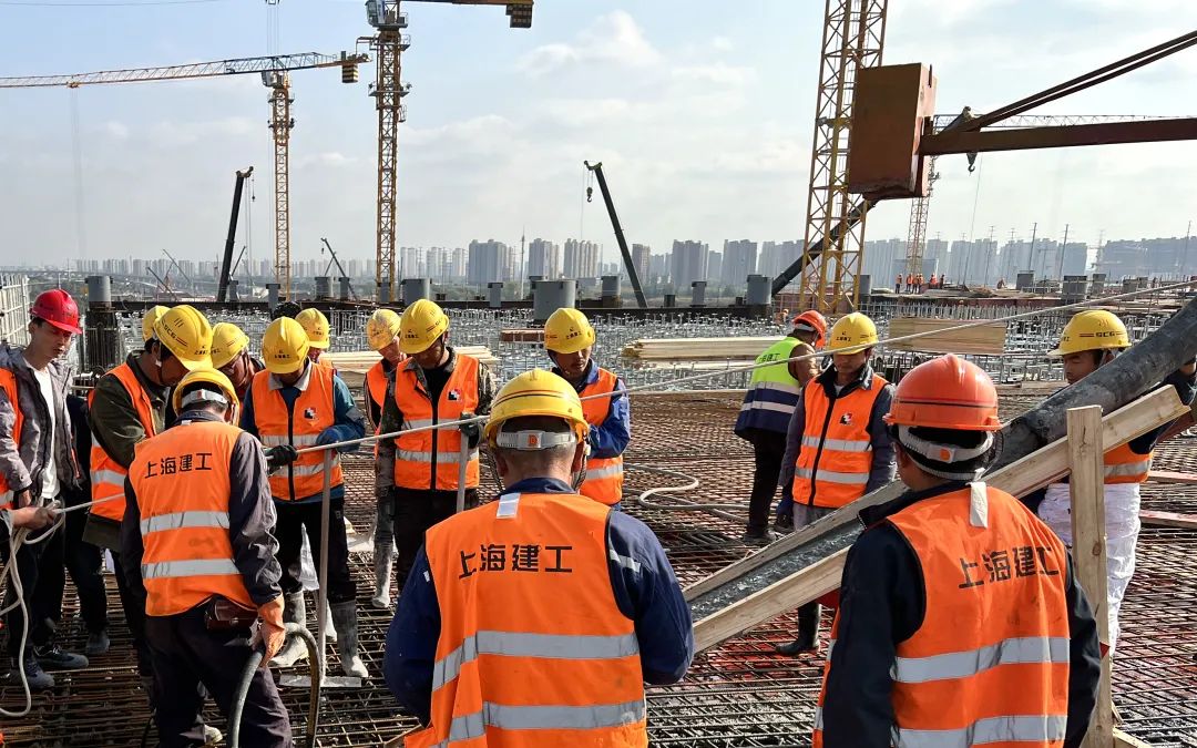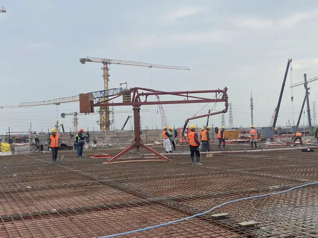 本次浇筑的为采用“跳仓法”建设的首个仓块,编号为A1-2,面积约1936平方米,浇筑混凝土方量约1458立方米。