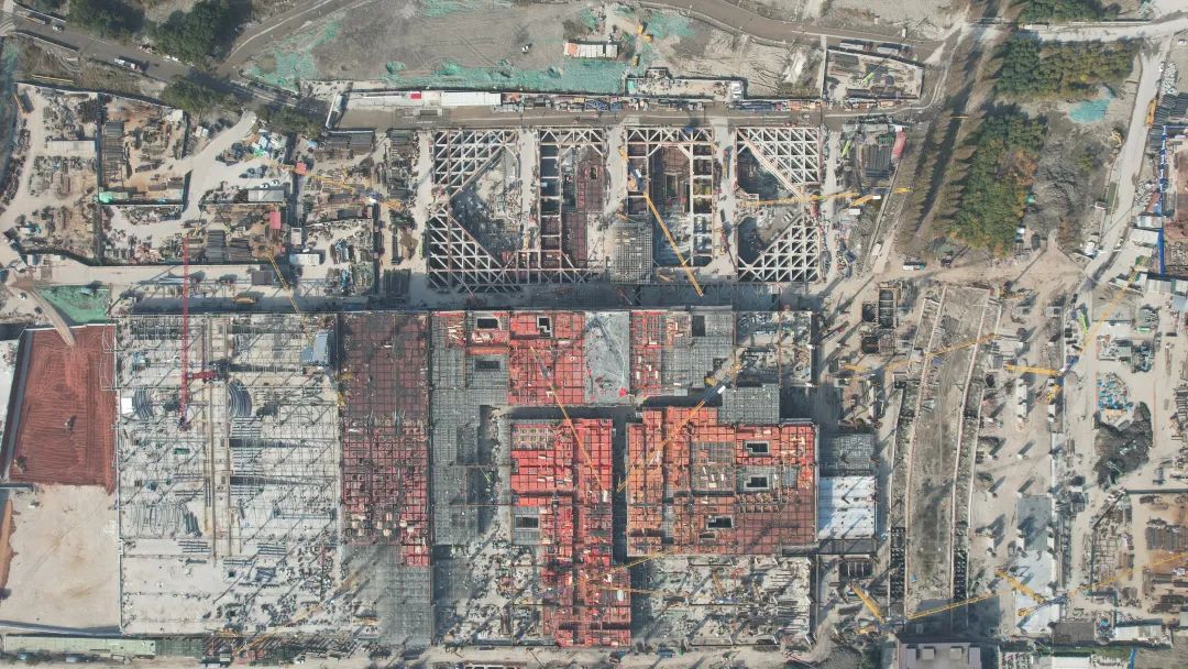 作为站城融合高铁枢纽之一、长三角一体化国家战略基础设施互联互通重大项目,当前,松江枢纽涉及站房区和西侧雨棚区承轨层结构施工已完成,预计年内完成所有承轨层施工内容,为完成主体结构和屋盖钢桁架施工创造了有利条件。