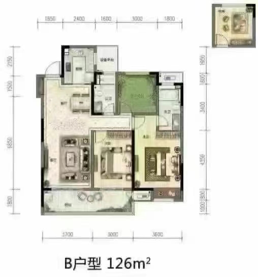 [出售] 出售中景尚海城。126平毛坯,黄金楼层,三室两厅两卫,户型方正,南北通透,全天采